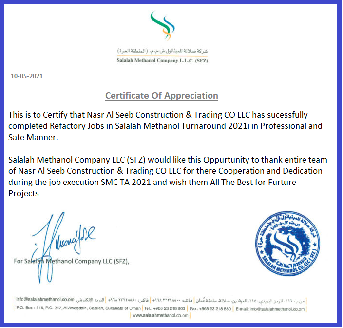 Nasr Al Seeb Construction & trading CO LLC is an ISO Certified, wholly owned Omani Company that has been in operation for over 29 years; Over the years the Company has been actively involved in the construction and development of the Country’s Infrastructure with Retail and in Mechanical machinery Tools. With operations and presence in all regions of the Sultanate and Saudi Arabia, the Company’s average annual turnover over the last five years has been OMR 2 mill. The Company is registered as an Excellent Grade Contracting Company for Civil Engineering Works. Nasr Al Seeb Construction & trading CO LLC has experience and expertise in project management.